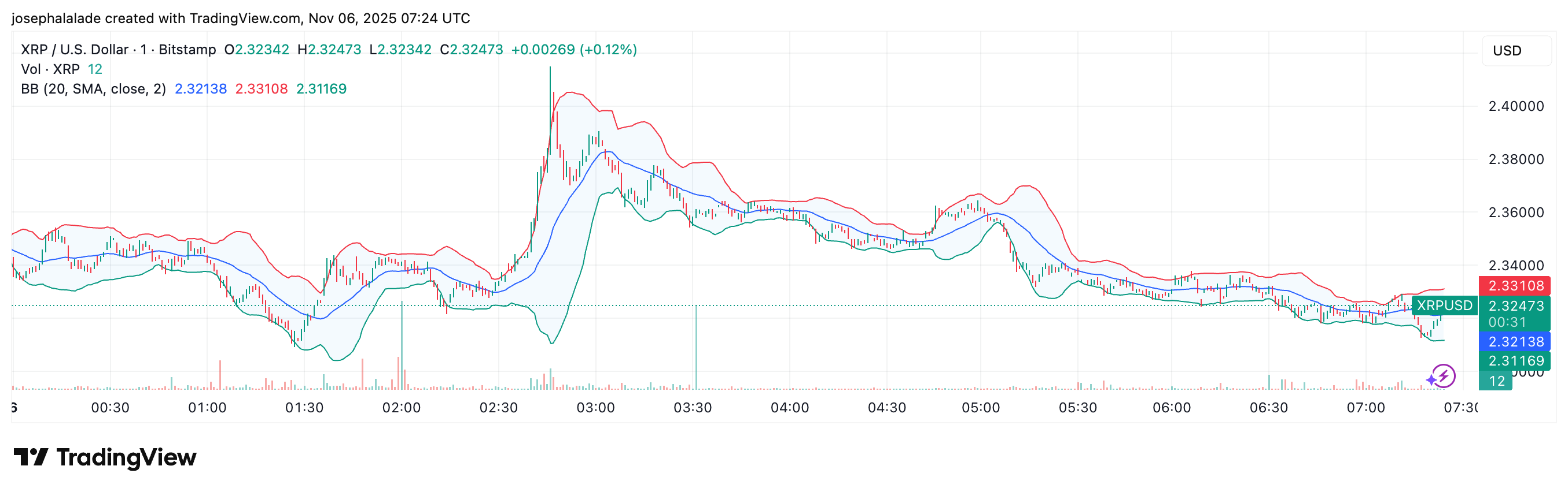 Su TradingView, la coppia XRP/USD mostra una resistenza nell’area 2,40–2,45 dollari e un supporto intorno a 2,20 dollari, suggerendo una fase di consolidamento mentre i trader valutano l’impatto dell’espansione istituzionale di Ripple.